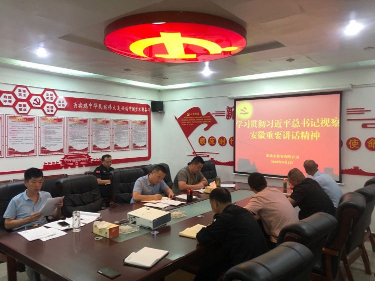 會議要求, 公司各部門、中隊(duì)采取多種形式組織學(xué)習(xí)貫徹,把學(xué)習(xí)習(xí)近平總書記考察安徽重要講話指示精神與學(xué)習(xí)貫徹習(xí)近平新時(shí)代中國特色社會主義思想結(jié)合起來;與學(xué)習(xí)貫徹《習(xí)近平談治國理政》第三卷結(jié)合起來,切實(shí)做到入腦入心、篤信篤行。緊緊圍繞習(xí)近平總書記考察安徽重要講話指示中明確的重點(diǎn)任務(wù)聚力用勁,立足保安工作職能,堅(jiān)持穩(wěn)中求進(jìn)工作總基調(diào),堅(jiān)持高質(zhì)量轉(zhuǎn)型發(fā)展,確保習(xí)近平總書記重要講話精神落地生根、開花結(jié)果。