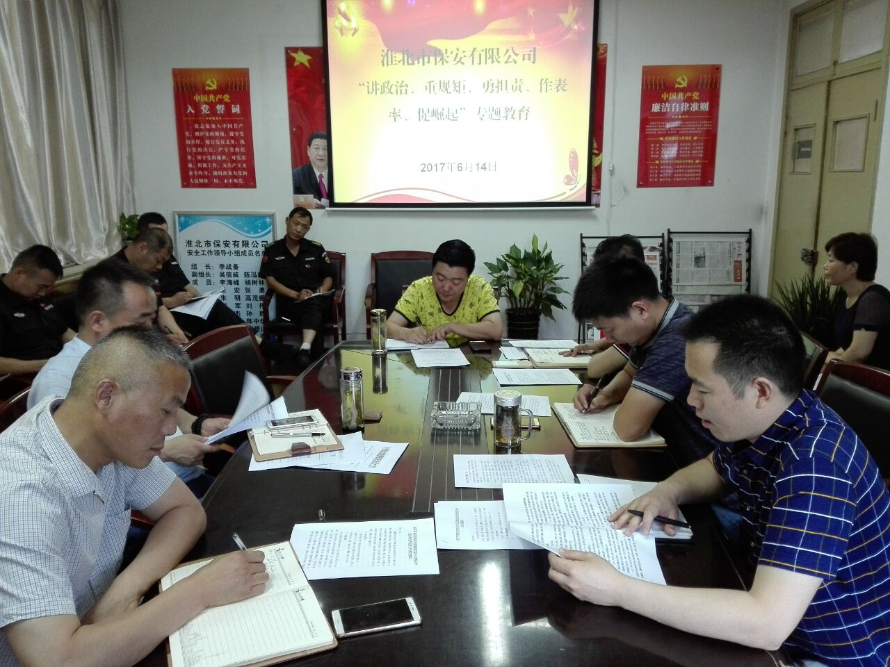 6月14日,按照“兩學(xué)一做”學(xué)習(xí)教育活動安排部署,保安公司黨支部組織黨員開展“講政治、重規(guī)矩、勇?lián)?zé)、作表率、促崛起”專題教育活動。會議由支部書記李戰(zhàn)備同志主持,支部成員、黨員代表共計22人參加會議并做交流發(fā)言。